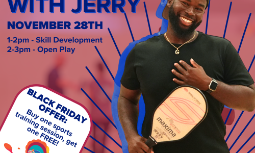 Give thanks and level up your game! Join us for a fun-filled afternoon at our Post-Thanksgiving Pickleball with Jerry, led by our very own Jerry Glass: champion of our National Pickleball Day Tournament and one of the Kroc’s top players.
