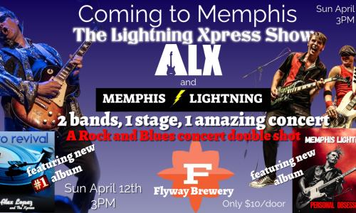 The Lightning Xpress show rolls into Memphis featuring Alex Lopez & Memphis Lightning for one high voltage blues rock night! It's a NEW album double release show, with 2 nationally touring artists that have joined forces to create a special rocking blues concert/event - Sunday April 12th at 3PM...