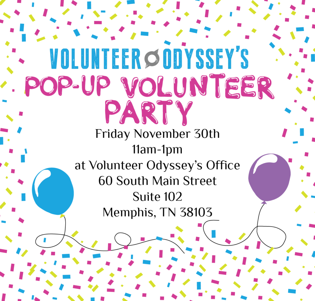 6. Volunteer Odyssey’s Pop Up Volunteer Party: Friday, November 30th from 11-1pm