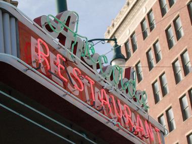 Assignment #130 in the 365 Things to Do in Memphis to eat lunch at one of the Arcade's named tables.