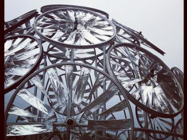 But first, take a look at the new bike part disco ball that was designed by sculptor Eli Gold. It lives outside of Crosstown Arts on Watkins (in Midtown):