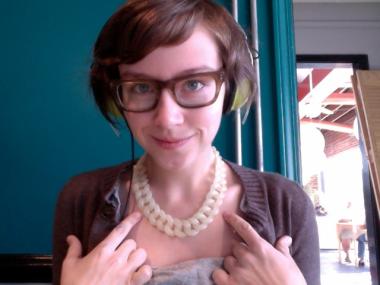 If I had pierced ears, I would be all about these blue stone and chain earrings by local jewelry designer Becca Belz.