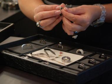 The jewelry at Charlotte is sort of like adult Legos. All of the pieces in the collection fit with all of the other pieces. Meaning, the stones in the middle of the rings can become necklace pendants, necklaces can be snapped together to make longer necklaces, and round, flat stones and discs can be mixed and matched.
