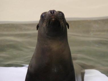 Meet Teva, the Memphis Zoo's three-month-old baby sea lion. Today, while the rest of us were at work, she was getting swimming lessons.
