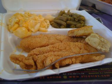 Southern people are big fans of the meal known as the "meat and three". A typical meat and three includes some kind of meat (think fried chicken or catfish, maybe turkey and dressing) and three vegetables of your choice on the side. Usually, the vegetables are distinctly Southern - fried okra, slaw, green beans seasoned with salt pork, and fried green tomatoes are usually on the list.